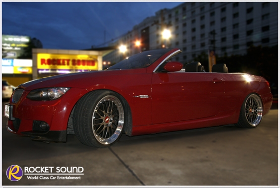 BMW 325i Convertible เป็นรถสไตล์สปอร์ต ด้วยพื้นที่ๆจำกัด ถือว่าเป็นความท้าทายในการติดตั้งระบบเครื่องเสียง เพื่อให้คุณภาพเสียงออกมาได้เต็มศักยภาพ การพิจารณาตำแหน่งในการวางลำโพงและความลงตัวของงานออกแบบที่สุดเรียบหรูและงดงาม บ่งบอกถึงความชำนาญ Sub 12" Rainbow ลำโพงสายพันธุ์ดุจากเยอรมันนี ถูกจัดวางฝังลงในเบาะของผู้โดยสารด้านหลัง ด้วยการคำนึงประโยชน์ของพื้นที่ใช้สอย