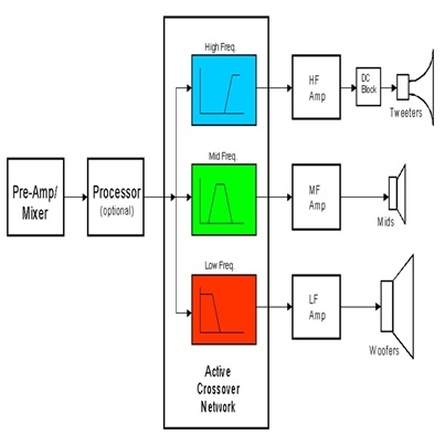 เมื่อการปรับเปลี่ยนจุดตัดความถี่ในพาสซีฟครอสโอเวอร์ค่อนข้างเป็นเรื่องยุ่งยาก และผูกผันอยู่กับเรื่องของค่าใช้จ่าย แนวทางของระบบที่ยืดหยุ่นอย่าง “ระบบไตรแอมป์” จึงเป็นระบบที่น่าจับตามอง เพราะการเลือกช่วงคลื่นความถี่ของตัวขับเสียงแต่ละตัว จะถูกกำหนดด้วย “อีเล็คโทรนิค-ครอสโอเวอร์” และให้ความยืดหยุ่นที่สูงยิ่งด้วยลักษณะการปรับจุดตัดในแบบ “ต่อเนื่องอิสระ” อาทิ จุดตัดระหว่างมิดวูฟเฟอร์กับทวีตเตอร์นั้น สามารถเลือกช่วงความถี่ได้ตั้งแต่ 2 kHz, 2.5 kHz, 3 kHz, 3.5 kHz, 4 kHz, 4.5 kHz, 5 kHz ยิ่งกับอีเล็คโทรนิคครอสโอเวอร์ชั้นเยี่ยมๆบางเครื่อง ยังสามารถเลือกจุดตัดความถี่ในระหว่างตัวขับเสียงสองส่วนนี้ ขึ้นไปได้ถึงระดับ 8 kHz (สามารถติดตั้งบนเสา A-Pillar ช่วงบนได้เลยทีเดียว)