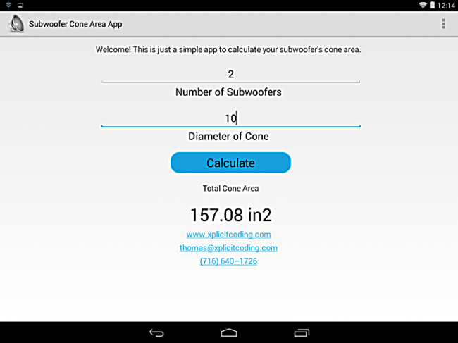 ครั้งนี้เป็นแอปแนะนำสำหรับนักออกแบบระบบเสียงรถยนต์ ที่ต้องการคำนวณหาพื้นที่หน้ากรวยของซับวูฟเฟอร์ ทั้งเพื่อการคำนวณตำแหน่งจุดตกของเสียง หรือการวางระบบเพื่อการแข่งขันเสียง ที่กำหนดรุ่นด้วยพื้นที่หน้ากรวย