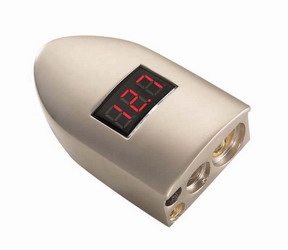 Total digital monitoring begins at the battery. This terminal completes the digital EFX family allowing you control of our system voltage. Accepts one 1/0 gauge, one 4 gauge and two 8 gauge inputs. Satin Platinum plated with clear ABS housing.