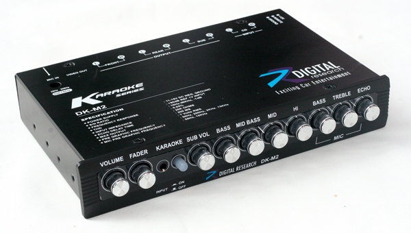 DK-M2 อุปกรณ์ปรับแต่งเสียงที่ร่วมความสามารถเอาไว้ถึง 3 การใช้งานหลักคือ ปรีแอมป์ ปรีคาราโอเกะ และอีเล็กทรอนิคส์ครอสโอเวอร์ปรับแต่งเสียง เริ่มต้นที่ฟังก์ชั่นปรีแอมป์ ตัวเครื่องทำงานที่ไฟ 11-15 โวลต์ ตอบสนองความถี่ 10 - 30,000 เฮิรตซ์(-1ดีบี) ความเพี้ยน 0.05 เปอร์เซ็นต์ ความต้านทานสัญญาณขาเข้า 20 กิโลโอห์ม อัตราส่วนการแยกช่องสัญญาณ 75 ดีบี ให้สัญญาณขาออกสูงสุด 7 โวลต์ ปรับแต่งเสียงที่ความถี่ 50/200/2,000/15,000 เฮิรตซ์ เพิ่ม/ลด 12 ดีบี ฟังก์ปรีแอมป์ ปรีบแต่งเสียงไมค์ แอคโค่ดีเลย์(ECHO) 200 MS เพิ่มเสียงทุ้ม 50 เฮิรตซ์ เสียงแหลม 10,000 เฮิรตซ์ ฟังก์ชั่นอีเล็กทรอนิคส์ครอสโอเวอร์ ตัดความถี่สัญญาณซับวูฟเฟอร์ 30 - 300 เฮิรตซ์