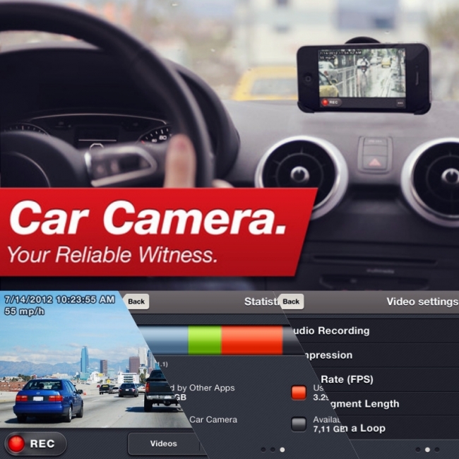 เปลี่ยน iPhone ให้กลายเป็นกล้องบันทึกการขับขี่ติดหน้ารถ ด้วยแอป Car Camera DVR Lite สามารถบันทึกวิดีโอ ด้วยความละเอียดภาพ 640x480, 1280x720, 1920x1080 ที่ 30 FPSI เก็บข้อมูลในวิดีโอ ได้ทั้งเวลา, ความเร็ว, สภาพแวดล้อม, และเสียง เปลี่ยนมาตรวัดได้ทั้ง Metric และ English สั่งให้บันทึกต่อเนื่องได้ โดยจะบันทึกทับในกรณีที่หน่วยความจำเต็มเองอัตโนมัติ เก็บข้อมูลไฟล์วิดิโอในส่วนของแอปพลิเคชั่นเอง เล่นกลับได้ด้วยโหมดวิดีโอเพลย์ หรือผ่านอุปกรณ์ที่รองรับ AirPlay