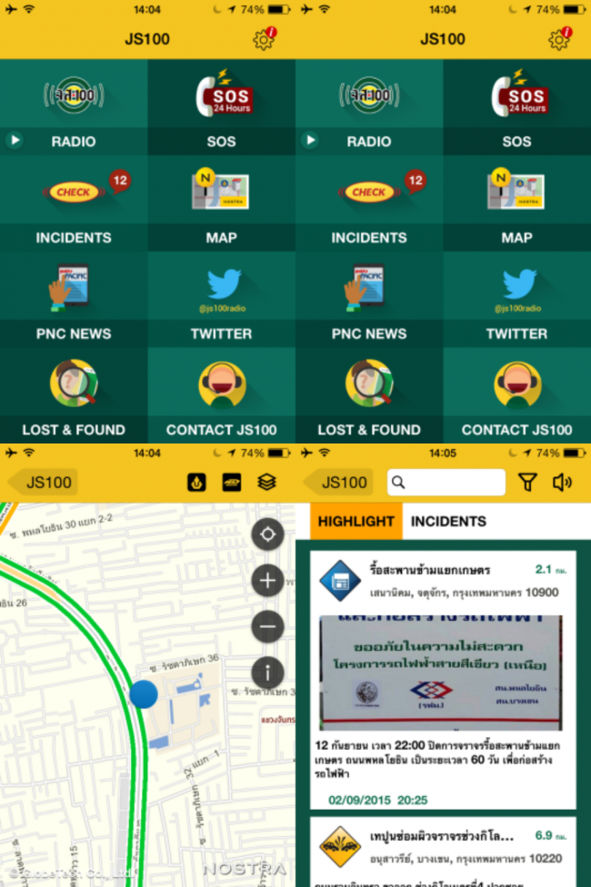 JS100 Application แอปเพื่อการเดินทางที่ปลอดภัย พัฒนาประโยชน์แก่ประชาชน โดย จส.100 นำเสนอจุดเด่นในด้าน การให้บริการข้อมูล การใช้ความช่วยเหลือด้านต่างๆ ที่ทาง จส.100 มีประสบการณ์มายาวนาน