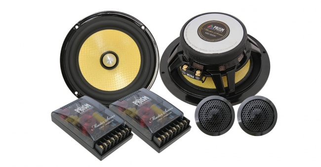 ดอกลำโพงเสียงกลางทุ้มขนาด 6.5 นิ้ว กรวยลำโพงเคฟล่าร์ ดัสแค็ปเฟสปลั๊กผลิตด้วยอะลูมิเนียม ขอบเซอร์ราวด์ยาง โครงโลหะหล่อขึ้นรูป วอยซ์คอยล์ 2 ชั้น ผลิตด้วย KAPTON ขนาด 1 นิ้ว ทนความร้อนสูง แม่เหล็กสทรอนเทียมขนาด 90x36x13 มิลลิเมตร พร้อมยางหุ้มป้องกัน ดอกลำโพงเสียงแหลมโดมนิ่มผลิตจากผ้าไหม มีขนาด 25 มิลลิเมตร แม่เหล็กนีโอไดเมียม น้ำหนัก 0.32 ออนซ์ โครงสร้างผลิตด้วยอะลูมิเนียมขึ้นรูป วอยซ์คอยล์ ASV ทนความร้อนสูงขนาด 25 มิลลิเมตร พาสซีฟครอสโอเวอร์ชนิด 2 ทาง แผ่นวงจรผลิตด้วยกลาสไฟเบอร์ชนิด 2 ชั้น พร้อมขั้วต่อสำหรับการปรับแต่งเสียง ตอบสนองความถี่ 50 – 25,000 เฮิรตซ์ ความต้านทาน 4 โอห์ม ความไว 94 ดีบี รับกำลังขับปกติ 80 วัตต์ สูงสุด 160 วัตต์