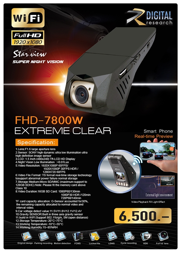 กล้องติดรถยนต์ DIGITAL RESEARCH FHD-7800W EXTREME CLEAR