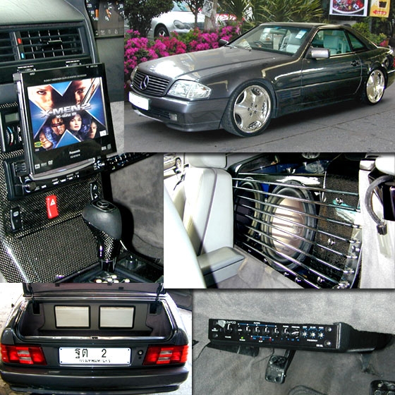 รถสปอร์ตคันนี้ถูกออกแบบการติดตั้งระบบเครื่องเสียงโดยช่างผู้ชำนาญจาก ร็อกเก็ตซาวด์ โชว์ระบบอันครบถ้วนทั้งภาพและเสียง เริ่มด้วย TV PANASONIC รหัส CQ-VD7001W พร้อม DVD ในตัว ส่งสัญญาณสู่ปรีแอมป์ ZAPCO SX-SL กรองสัญญาณส่งให้แอมป์ MMATS SQ4075 (4Ch) ขับสัญญาณออกลำโพง PHONENIX GOLD ELITE 6 คู่หน้าและ PHOENIX GOLD ELITE 5 ที่ติดตั้งอยู่ในแผงซาวด์คอนเซ็บซึ่งอยู่ด้านหลังเบาะ ส่วนด้านภาค LOW-PASS ส่งตรงไปสู่แอมป์ MMATS 1400.1 ขับพลังไปสู่ซับ PHONENIX GOLD TI 12 ในตู้ซับที่ทำการติดตั้งอย่างลงตัวบริเวณหลังเบาะเช่นเดียวกัน ในเรื่องของอุปกรณ์สายจาก DIGITAL RESEARCH ป้องกันเสียงรบกวนด้วยแผ่น DAMPING จาก ACCUMAT รถสปอร์ตหรูคู่กับระบบเสียงที่เร้าใจแบบนี้ต้องที่ ROCKET SOUND