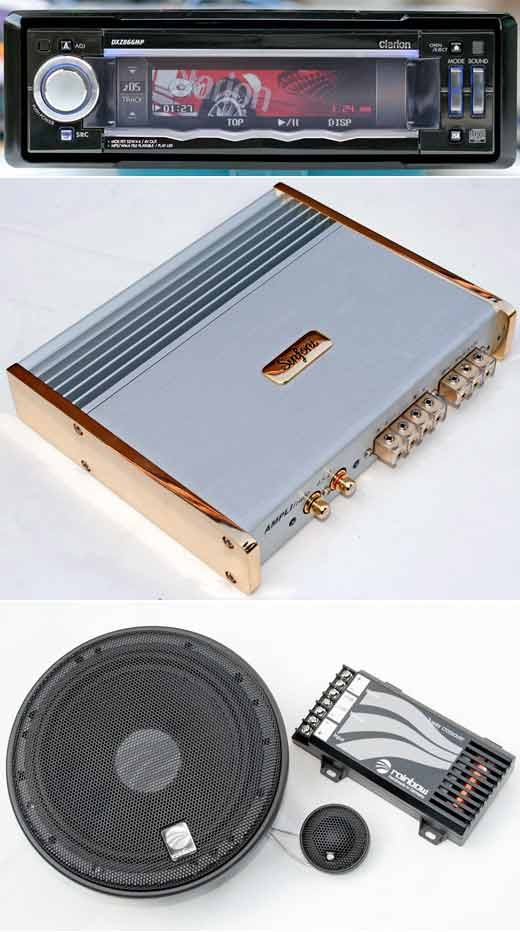 ยกตัวอย่างการจัดชุดเช่น ฟร้อนท์ CLARION DXZ866 เพาเวอร์แอมป์ SINFONI AMPLI tude 45.2 ลำโพง RAINBOW SLC 265