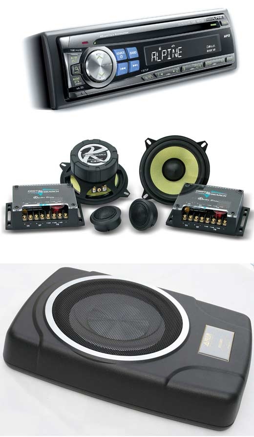 เริ่มต้นทางด้วยฟร้อนท์ ALPINE CDE-9870E ให้กำลังขับ 45 วัตต์ x 4 แชนแนล เชื่อต่อ iPod แบบ FULL SPEED พร้อมระบบค้นหาแบบแบ่งเป็นเปอร์เซ็นต์ รองรับแผ่น CD-R/RW/MP3 HP CROSSOVER 3 ตำแหน่ง ช่องสัญญาณขาออก 1 ชุด จอภาพแสดงผลแบบฟลูออเรสเซ้นต์