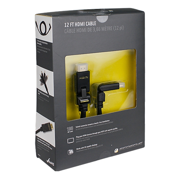 Ready for 3D displays, Swivel connector ensures a hassle-free installation, Gold-plated tips for enhanced connection and superior video signal, 180 degree rotating connector, 12 ft AV cable for high definition picture quality