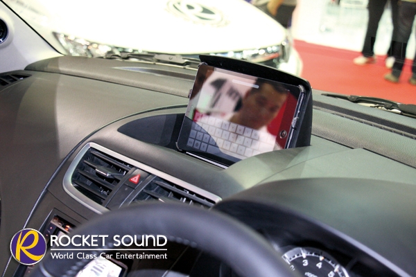 ที่ผ่านมาส่วนมากจะเป็นการสร้างหน้ากากรองรับบริเวณคอนโซลกลาง มีทั้งเเบบสร้างกลไกที่ ถอดเข้า-ถอดออก ได้ รวมไปถึงติดตั้งเเบบตายตัวเป็นส่วนหนึ่งของระบบไปเลย เเละสำหรับ SWIFT คันนี้เลือกที่จะใช้วิธีการสุดล้ำด้วยการทำเป็นลักษณะ ของช่องจอในรูปแบบเดียวกับรถหรูๆ ที่สามารถเปิด-ปิดได้ด้วยระบบไฟฟ้า โดยตัว TABLET ที่ถูกเลือกมาใช้งานคือ IPAD MINI ซึ่งเชื่อมต่อกับระบบเสียงในรถผ่านระบบ BLUETOOTH ในส่วนของตัวระบบเสียงเริ่มต้นที่เครื่องเสียง