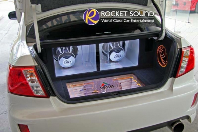 งานออกแบบติดตั้งแอมป์หลอด Prism MS100.4 และซับ Prism PSW12Pro พร้อมตู้อคิลิคโซว์ดีไซด์ เสริมความหรูหราด้วยไฟ LEDในรถ Subaru