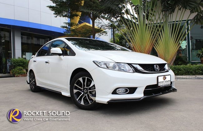 Honda Civic-Prism One Brand System งานออกเเบบติดตั้งเพาเวอร์เเอมป์ Prism PN-4.100 เเละ Prism PN-2.200 จำนวน 2 เครื่องภายในห้องเก็บสัมภาระ พร้อมติดตั้งลำโพงหน้า Prism PS6525 ลำโพงหลัง Prism PS6522 เเละซับ Prism PS-W10D ถ่ายทอดคุณภาพเสียงได้สมบูรณ์เเบบ ใน Honda Civic