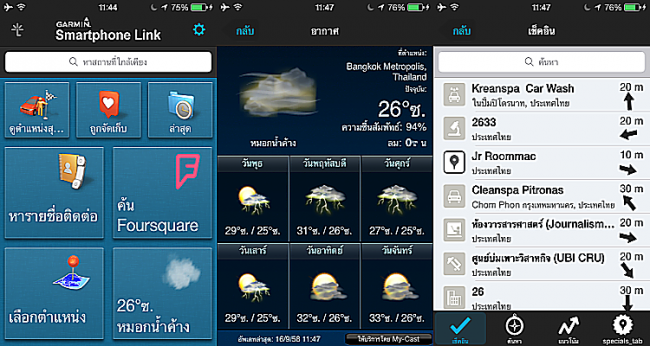 GARMIN Smartphone Link App สำหรับผู้ใช้อุปกรณ์ Garmin ในหลายๆรุ่นที่มีความสามารถเชื่อมโยง อาทิ Garmin nuvi 2467 แอปตัวนี้ช่วยให้สามารถเชื่อมโยงอุปกรณ์ Garmin เข้ากับ iPhone ได้อย่างสะดวก และแบ่งปันข้อมูล สามารถใช้งานในแบบ Real-Time ได้ด้วย